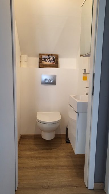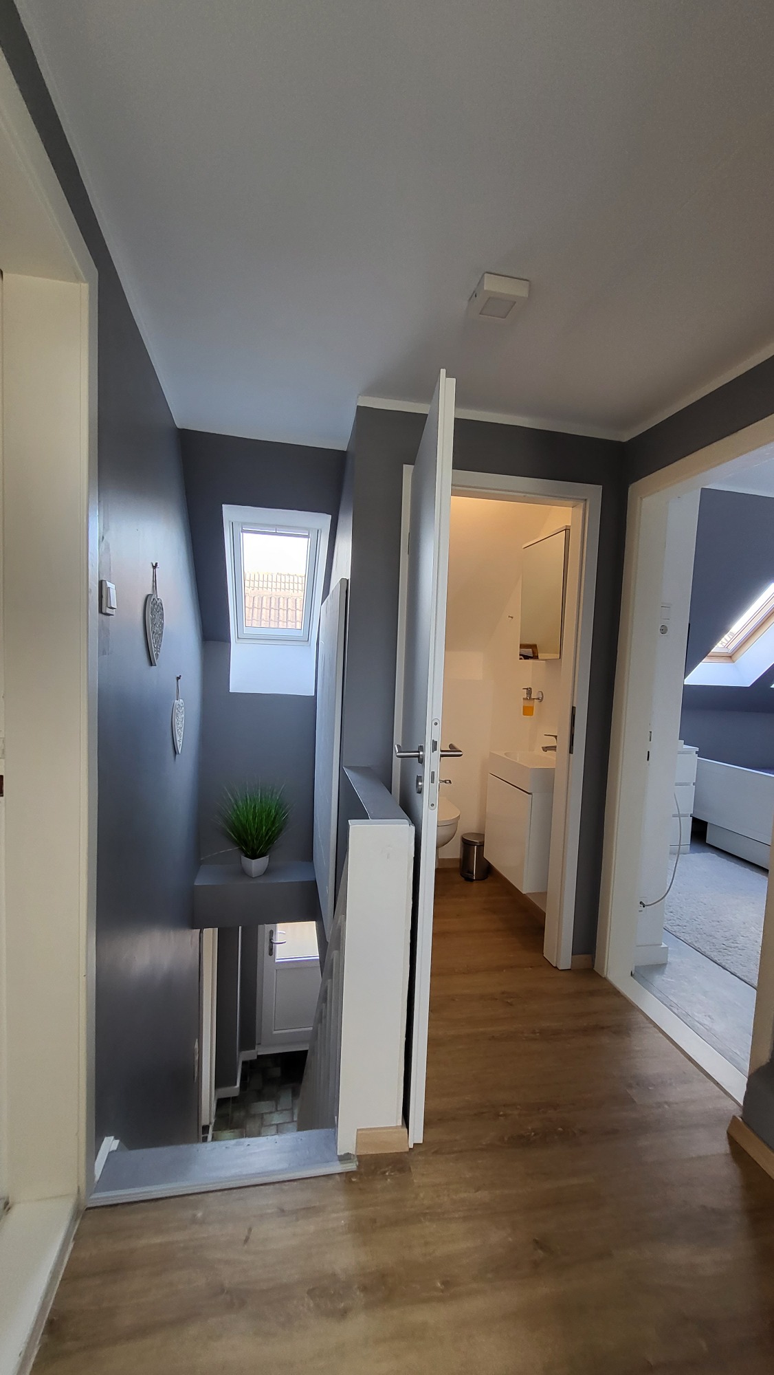 • Eine schmale Treppe führt zu den 3 geräumigen Schlafzimmern im 1 Stock mit einem Gäste WC auf der Etage