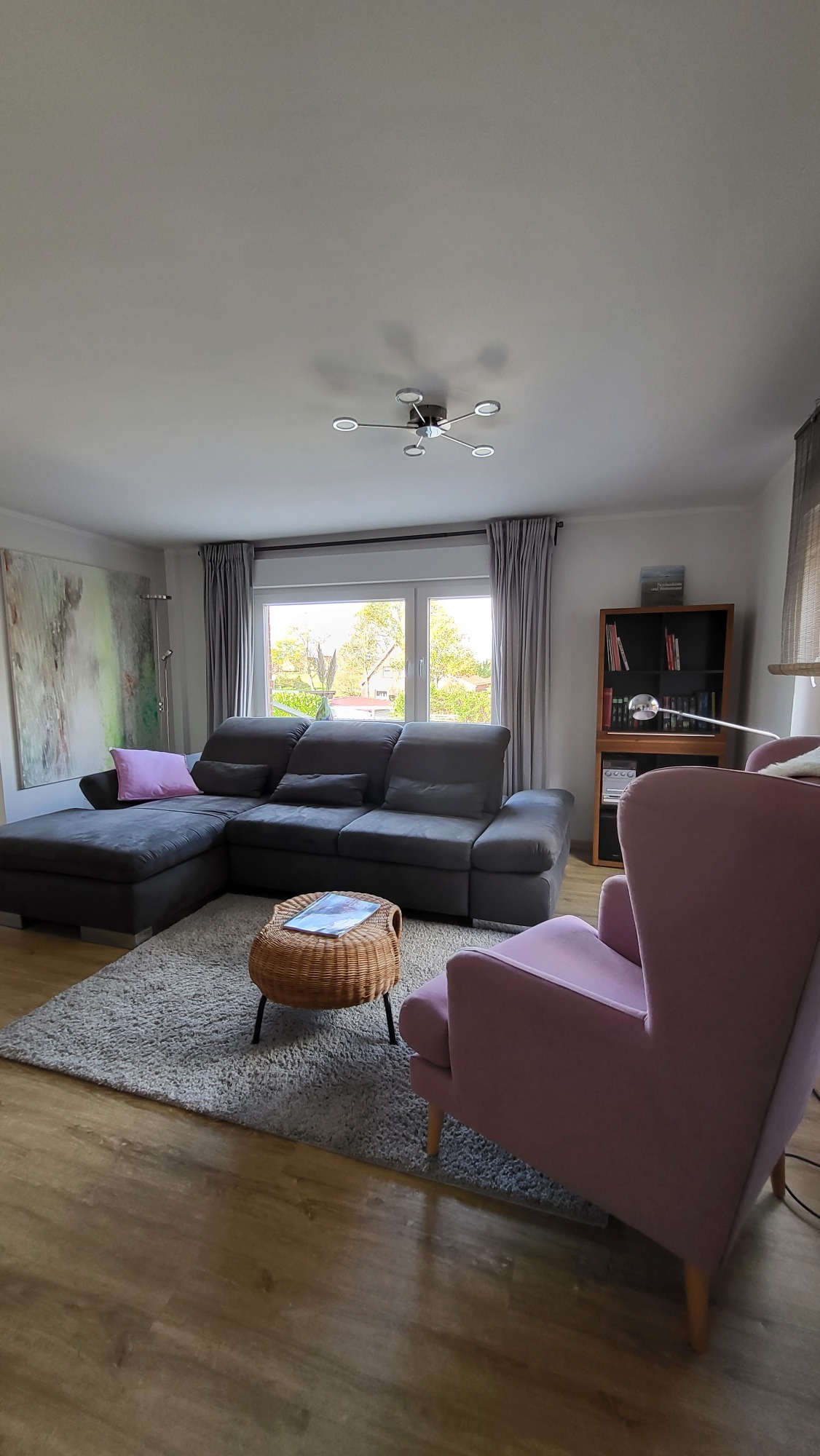 • Gemütliches Wohnzimmer mit einer Sofalandschaft und Kamin