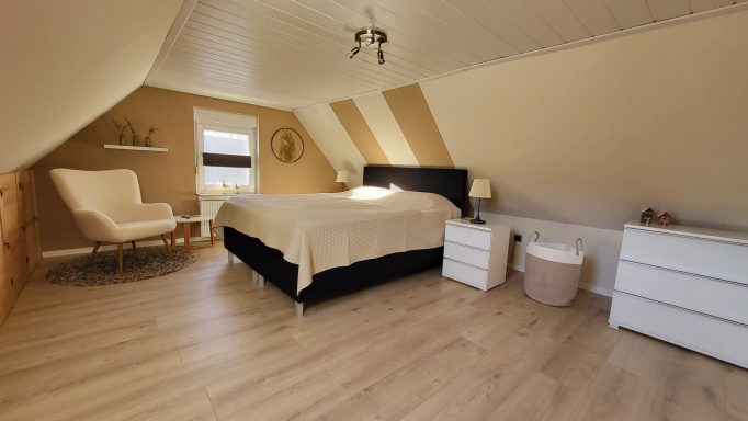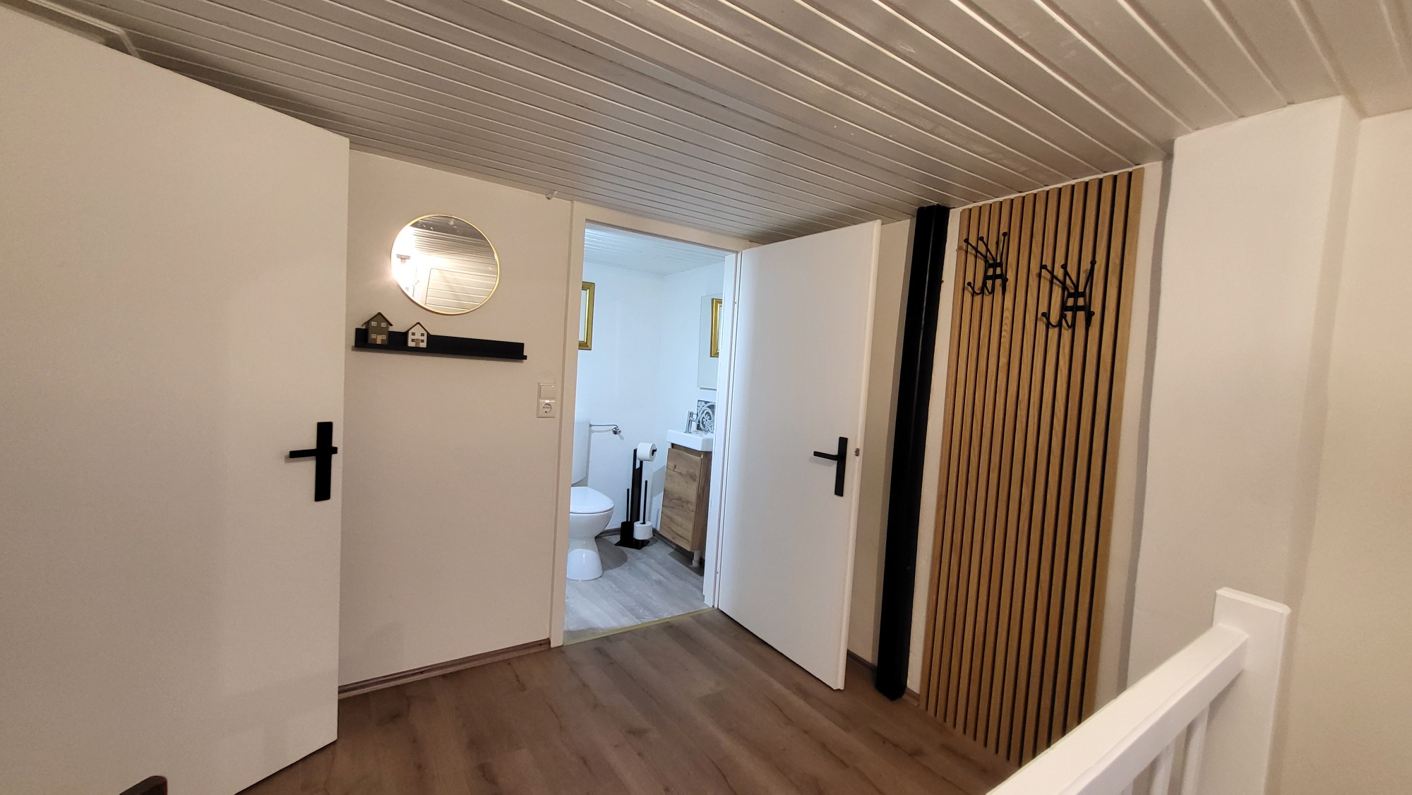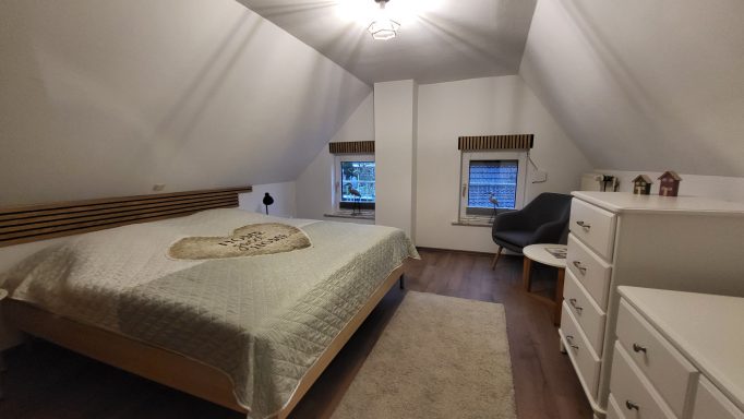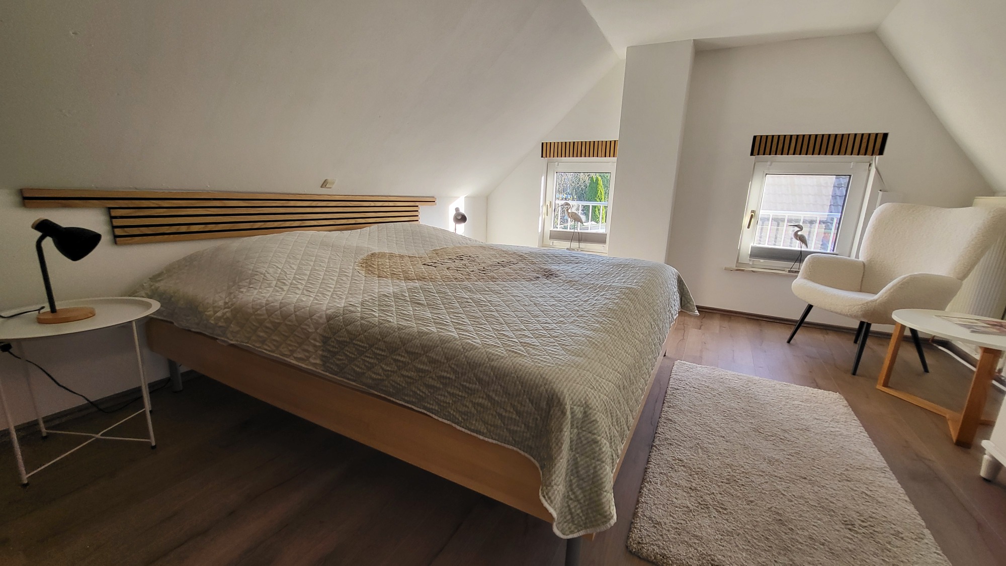 • 2 geräumige Schlafzimmer im Obergeschoss sind durch eine schmale Treppe zu erreichen.