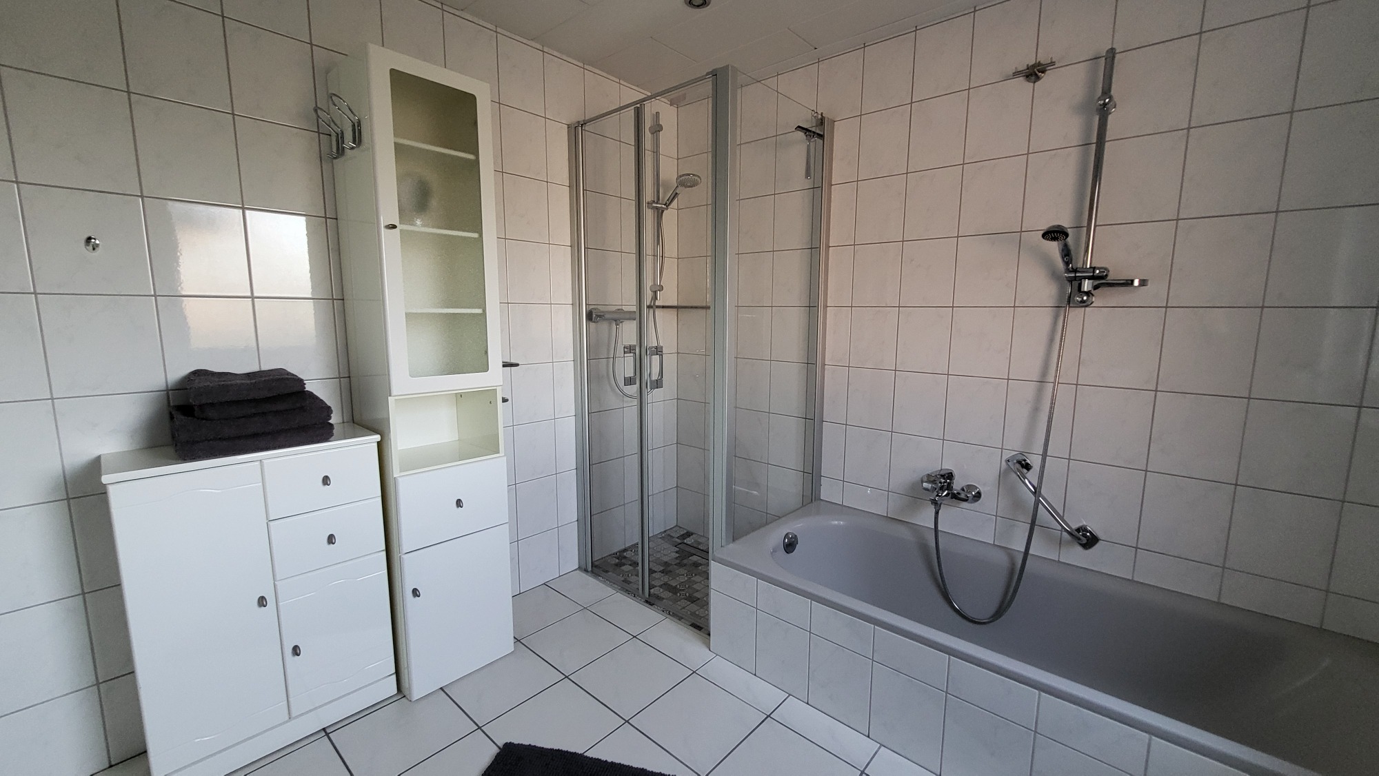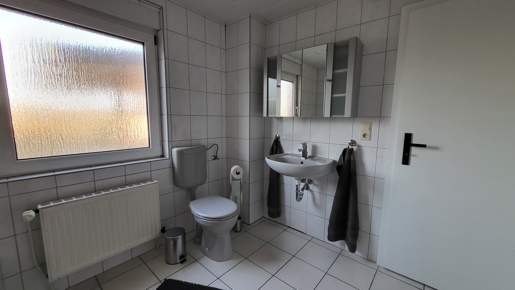 • Badezimmer mit einer Walk-in-Dusche und WC im Erdgeschoss